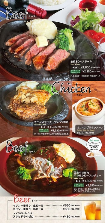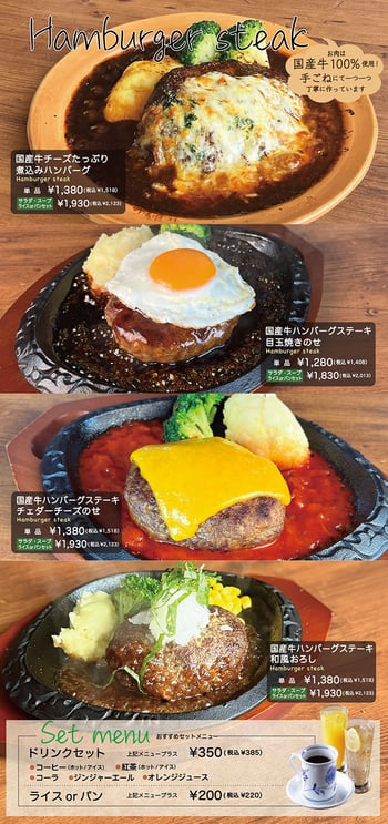 ディナーメニュー 17:00~21:00(ラストオーダー20:30)